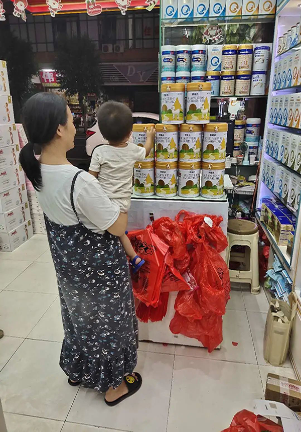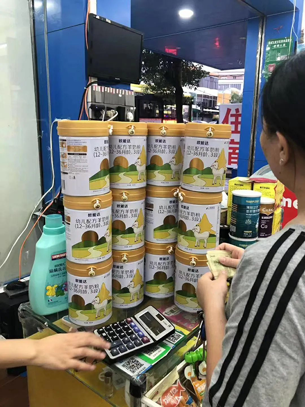寶寶高興的摸著自己熟悉的歐能達(dá)羊奶