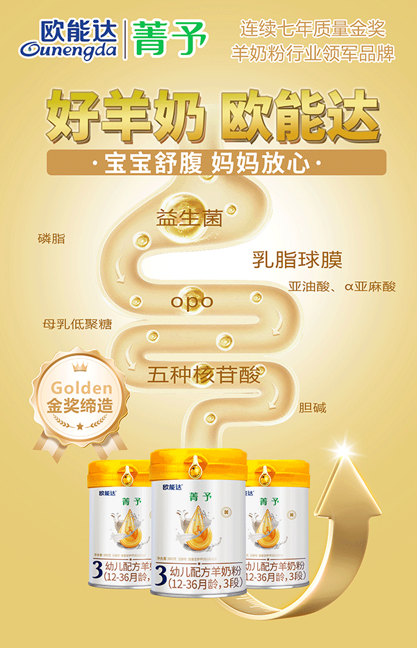 連續(xù)七年斬獲質(zhì)量金獎,羊奶粉行業(yè)領(lǐng)軍品牌**歐能達·菁予**,以滿滿營養(yǎng)力,承包寶寶成長的舒適與媽媽的安心~