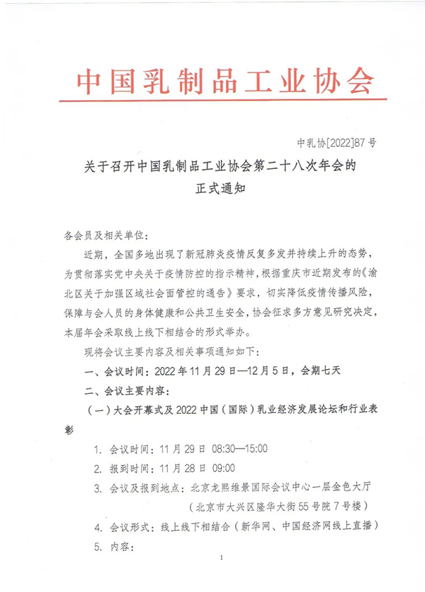 關于召開中國乳制品工業協會第二十八次年會的正式通知