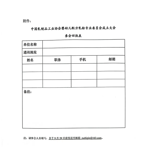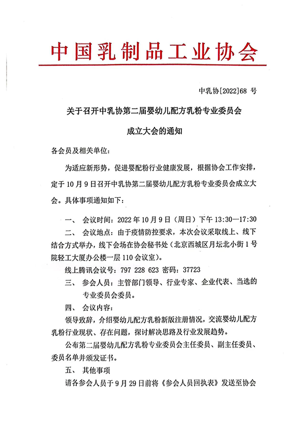 關于召開中乳協第二屆嬰幼兒配方乳粉專業委員會成立大會的通知