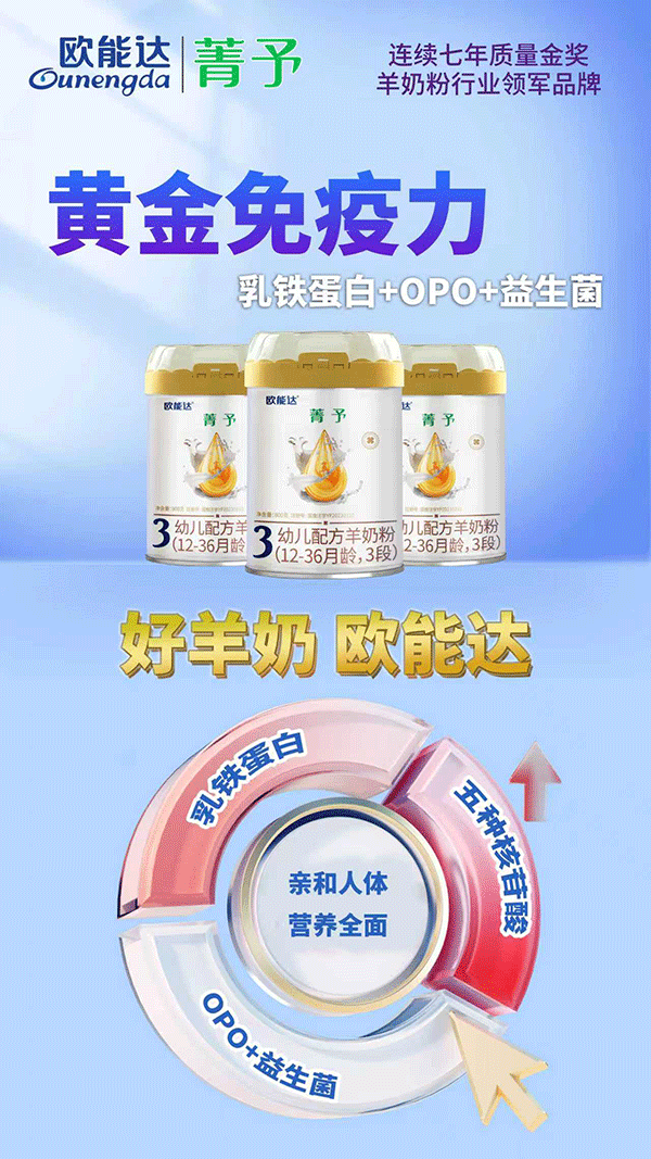 連續七年質量金獎,羊奶粉行業領軍品牌,好羊奶選歐能達準沒錯~
